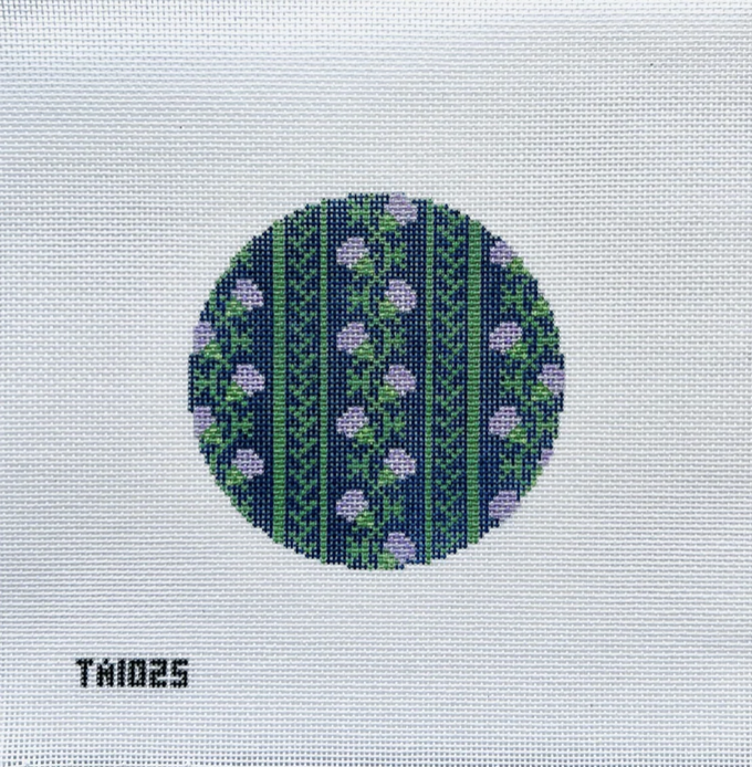 Thistle With Stripes Round Needlepoint Canvas